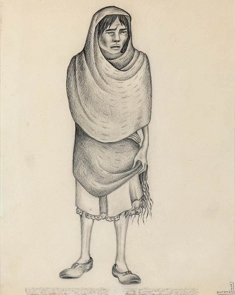 In parallel to her teaching career, Aurora continued with her role as a plastic artist; many of her works maintain a theme of social and gender criticism. Given the inability to dedicate herself full-time to art, she constantly focused on making notes and sketches as a visual log; some of these came to fruition in easel works and others in illustrations.