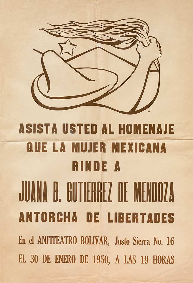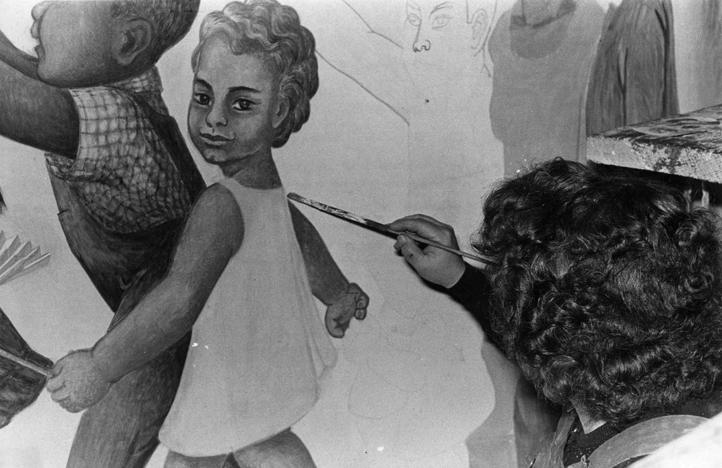 In the 1930s, Aurora Reyes was immersed in teachers' union activities from the Women's Action Secretariat. At the same time she was a member of the Mexican Communist Party (PCM) and was part of the feminist groups “Solidarismo Femenino” ("Female Solidarity") and “Las Pavorosas” ("The Dreadfuls"), a group that denounced gender inequality within the party and in the League of Revolutionary Writers and Artists (LEAR). In 1935 she participated in the first collective exhibition of posters and photomurals made by women organized by the Fine Arts Department, and since then she has always linked her mission as an educator to artistic movements.