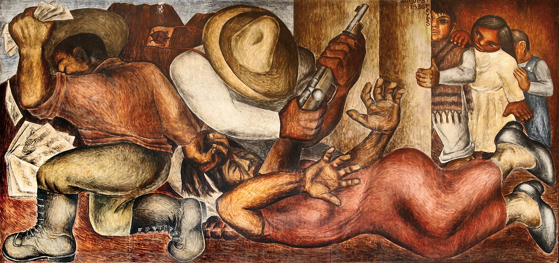Like many other artistic movements, muralism was developed from a masculine perspective and that is why the incorporation of Aurora Reyes to mural creation was exceptional, as she was the winner of the competition organized by the League of Revolutionary Writers and Artists (LEAR) to cover the lobby of the recently completed Revolution School Center. This school was built on the old grounds of the Belén Prison, and became a symbol of the new post-revolutionary regime. The School Center was an emblem of the secular and socialist educational paradigm. The theme of the mural Attack on Rural Women Teachers (1936) reflects the controversies and attacks that teachers suffered during the Cristero War. In the mural you can see a woman who is a victim of the resistance of opponents to the secular education initiative, while a boy and a girl witness the violence of the act. It is not unusual that this topic was of interest to Aurora Reyes, since she knew the circumstances suffered by the country's teachers.