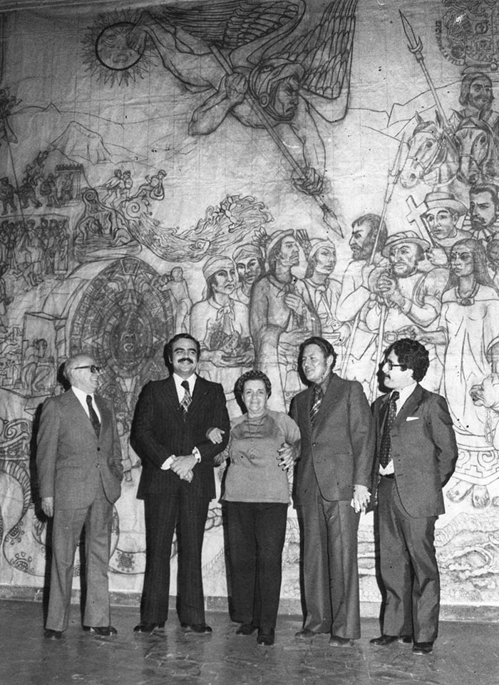 Finally, in 1980 he prepared the sketches for the unrealized mural project on the history of journalism, with the intention of capturing them within the Journalists Club. Although Aurora's mural production is limited, its relevance is fundamental in the history of muralism, since her works are still representative for the teaching profession, as a legacy of the political and social processes that the educational system in our country went through.