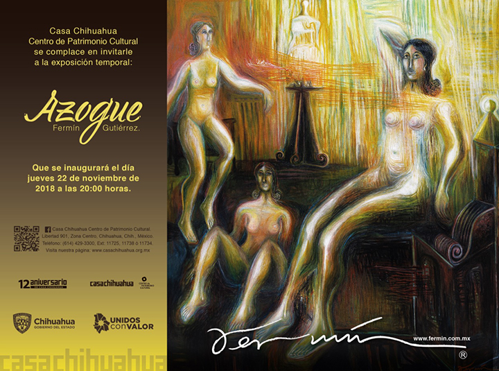 Este jueves 22 de noviembre a las 20:00 horas, será inaugurada la exposición Azogue de Fermín Gutiérrez, misma que se compone de 19 pinturas al óleo sobre lienzo de mediano y gran formato, y 2 esculturas en bronce.