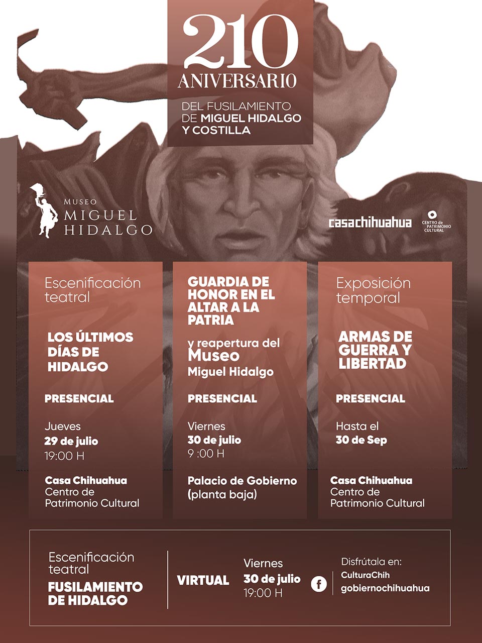 Teniendo como marco el 210 aniversario de la muerte de Don Miguel Hidalgo, se invita a la ciudadanía a disfrutar de esta actividad, así como a las subsecuentes el día 30 de julio en Palacio de Gobierno y de manera virtual a través de las redes sociales de la Secretaría de Cultura.