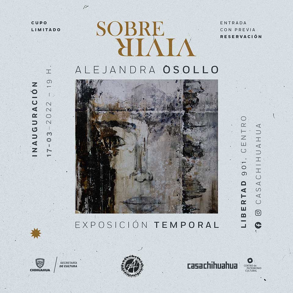 Casa Chihuahua Centro de Patrimonio Cultural invita a la nueva exposición artística de Alejandra Osollo, que será inaugurada este jueves 17 de marzo a las 19:00 horas, en un evento que será transmitido en vivo por las redes sociales del centro cultural.