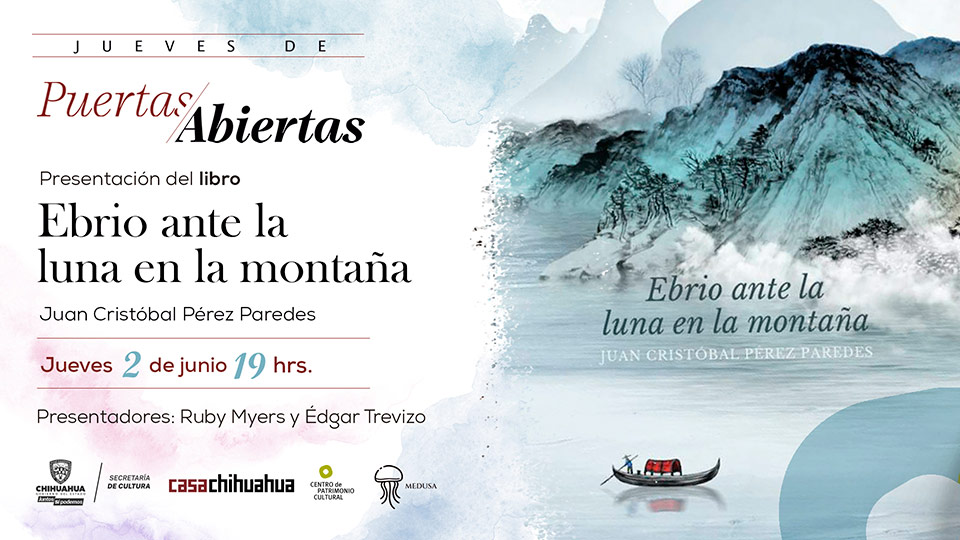 El jueves 2 de junio a las 19:00 horas se realizará la presentación del libro Ebrio ante la luna en la montaña, del poeta, ensayista y narrador deliciense Juan Cristóbal Pérez Paredes, en las instalaciones de Casa Chihuahua.