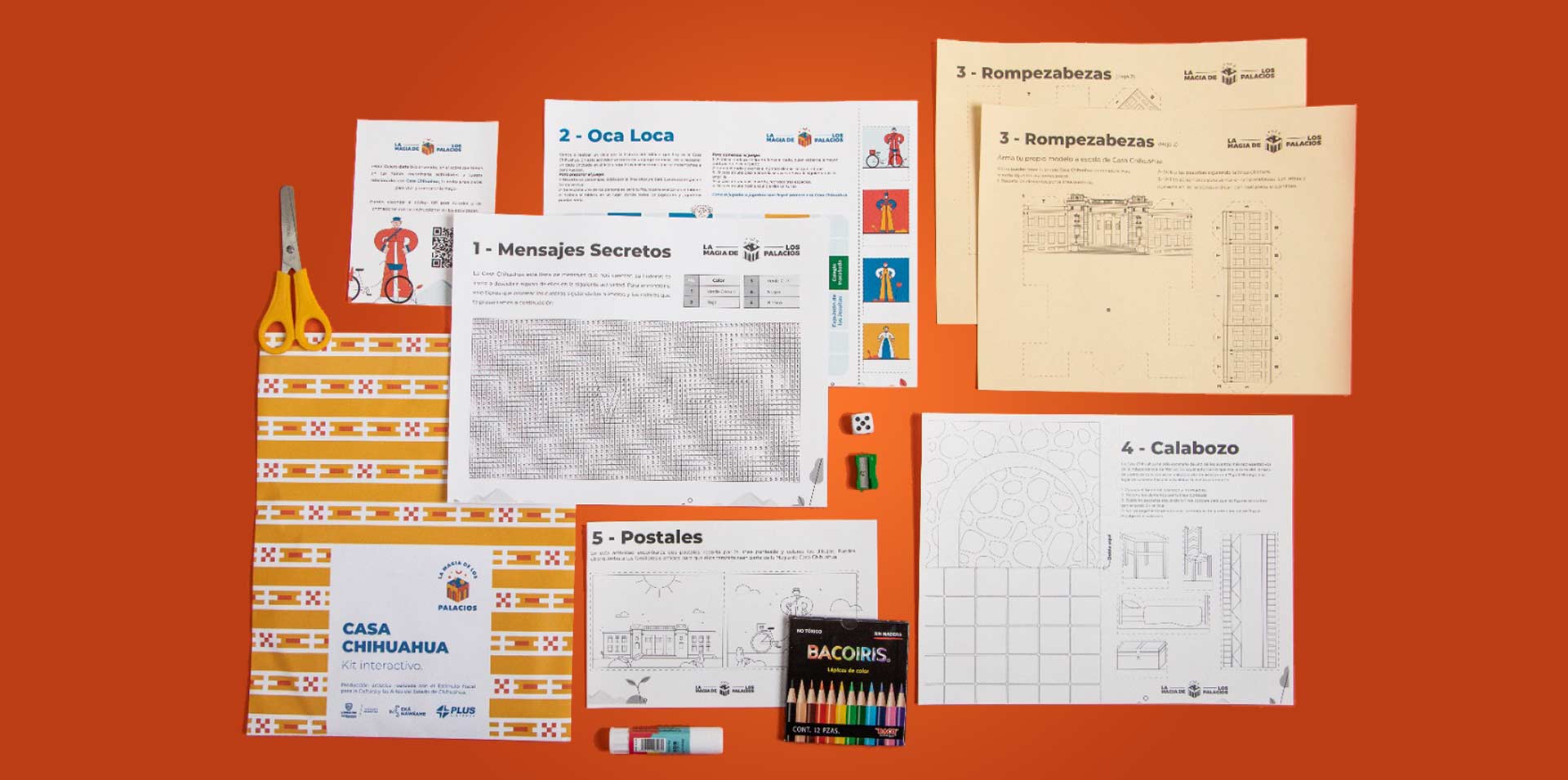 Las actividades están acompañadas de una serie de animaciones donde personajes representativos de la historia de Casa Chihuahua, guían el desarrollo de las actividades en casa. Tanto el diseño del sobre como de los materiales, está inspirado en los elementos y colores representativos del inmueble.
