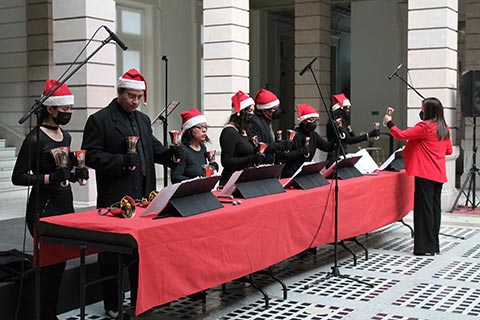 Posteriormente durante el fin de semana se realizó el Domingo de Museos con la presentación especial del Coro de Campanas Kapellmeister, dirigido por la Mtra. Lizeth Alba, presentando una selección de villancicos europeos y latinoamericanos.
