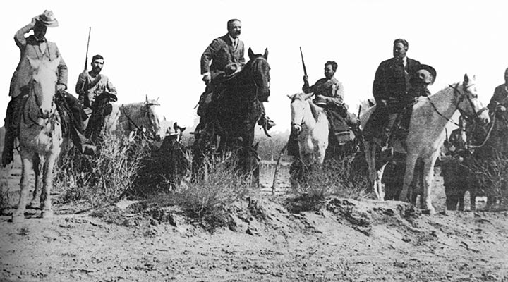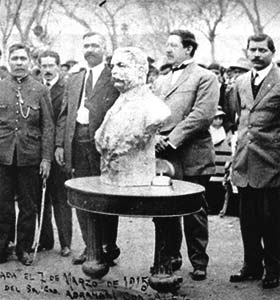 Francisco I. Madero frente a Casas Grandes en una de las primeras batallas contra el régimen; a su izquierda, Abraham González