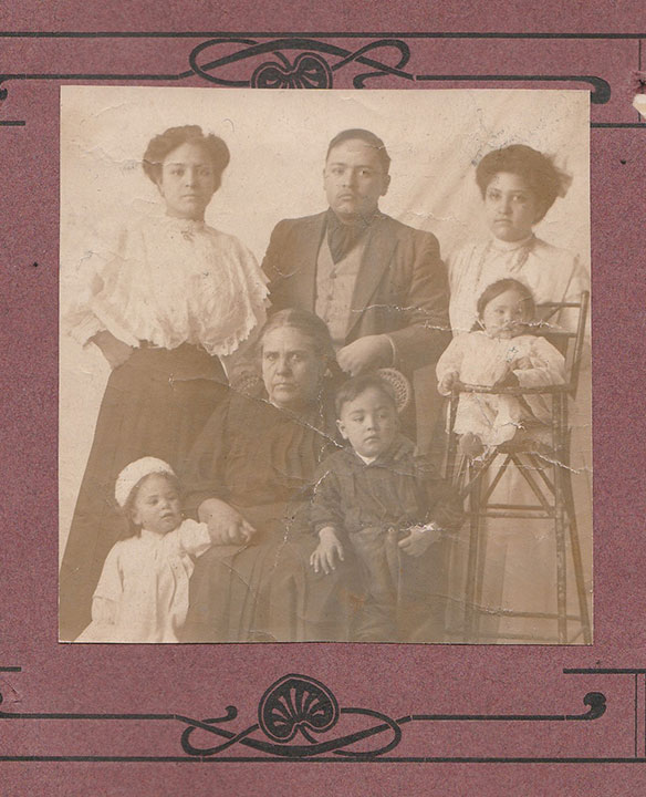 Collage fotográfico sobre la vida de Ignacio Medrano Chávez; su niñez, sus padres y hermanos, su esposa e hijos, viajes, días de campo, etc.