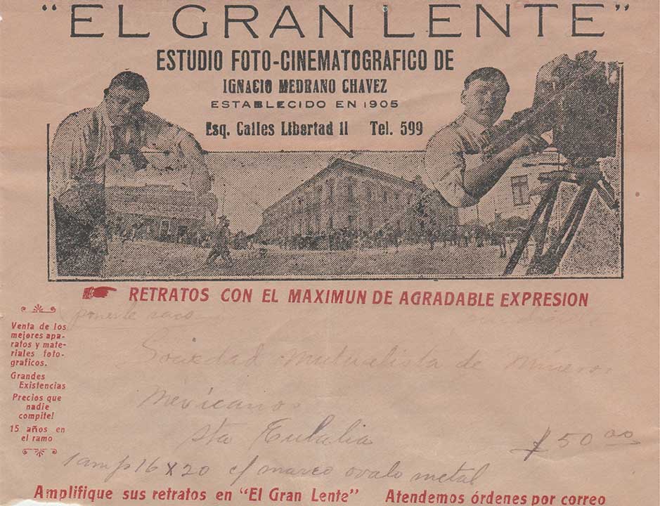 Primer local de “El Gran Lente” en la esquina de las calles J. Aldama y 15ª.