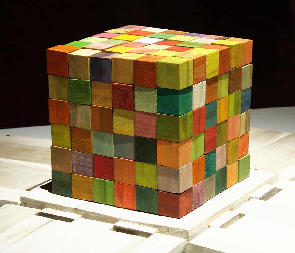 Más allá del minimalismo, el “menos es más” que el arquitecto Ludwig Mies van der Rohe mencionaba como síntesis de la intención de su obra arquitectónica, se ve ejemplificada en esta exposición, en la que se pone de manifiesto el trabajo disciplinado de Carlos Estrada-Vega en la concepción de cada obra, en el maquilado de cada pieza, repitiendo la línea recta, la superficie cuadrada y el volumen cúbico, como una plegaria, modificando sutilmente los colores en cada una de las pequeñas piezas que conforman la totalidad de la obra, encontrando el camino por el que nos invita a transitar.