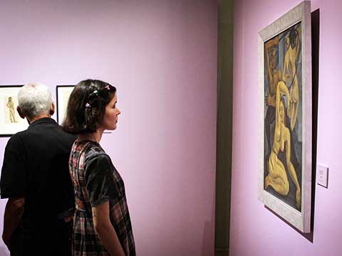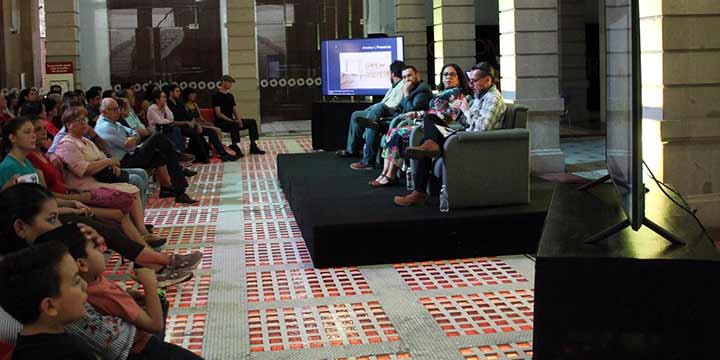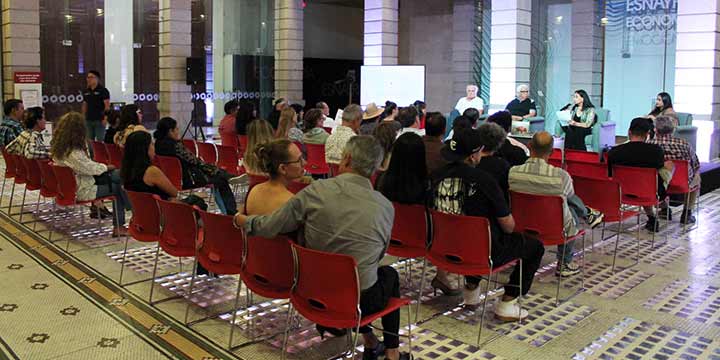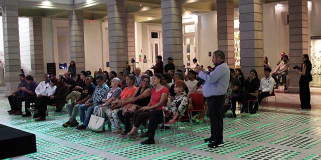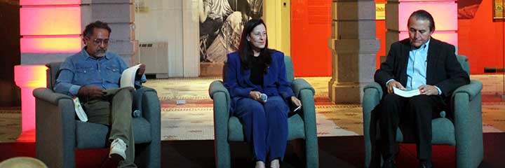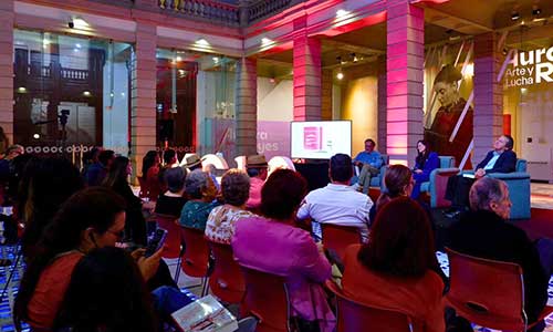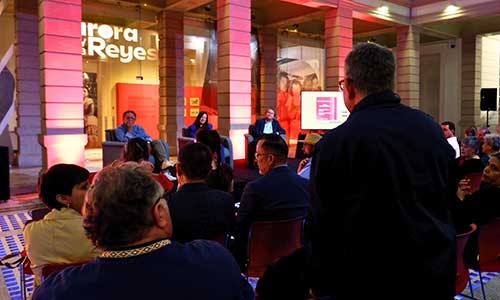 Recorrido nocturno por la exposición y la palabra de Aurora Reyes, donde el arte y la poesía se entrelazan bajo la tenue luz del museo para revivir la voz y la fuerza de la primera muralista mexicana.