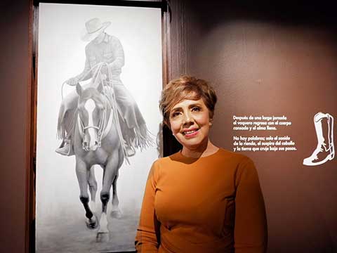 entre el ser humano, el caballo y el paisaje chihuahuense. En cada lienzo, la figura del vaquero se convierte en símbolo de nobleza y perseverancia,